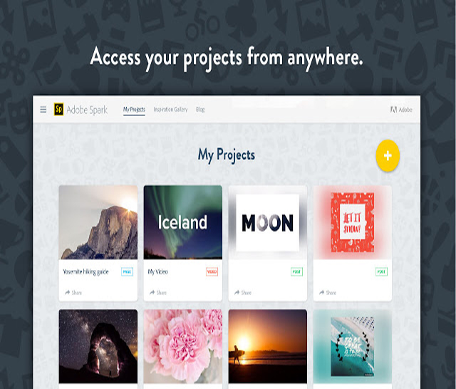 Là trang website giúp thiết kế poster miễn phí, Adode spark được sử dụng dễ dàng thông qua những bước đơn giản giúp thiết kế poster nhanh chóng. Đây là phần mềm có nhiều tính năng chuyên nghiệp như: Thay đổi phông nền, lưu mẫu tự động.... tạo trải nghiệm tuyệt vời cho người dùng.