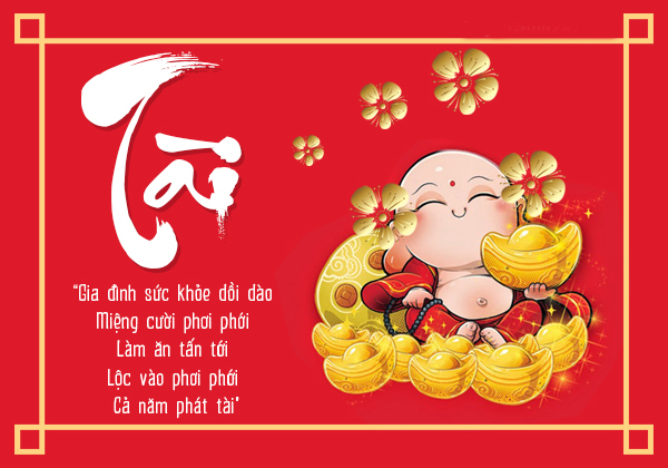 Thiệp năm mới kết hợp hài hào giữa sắc đỏ tài lộc và sắc vàng vui tươi