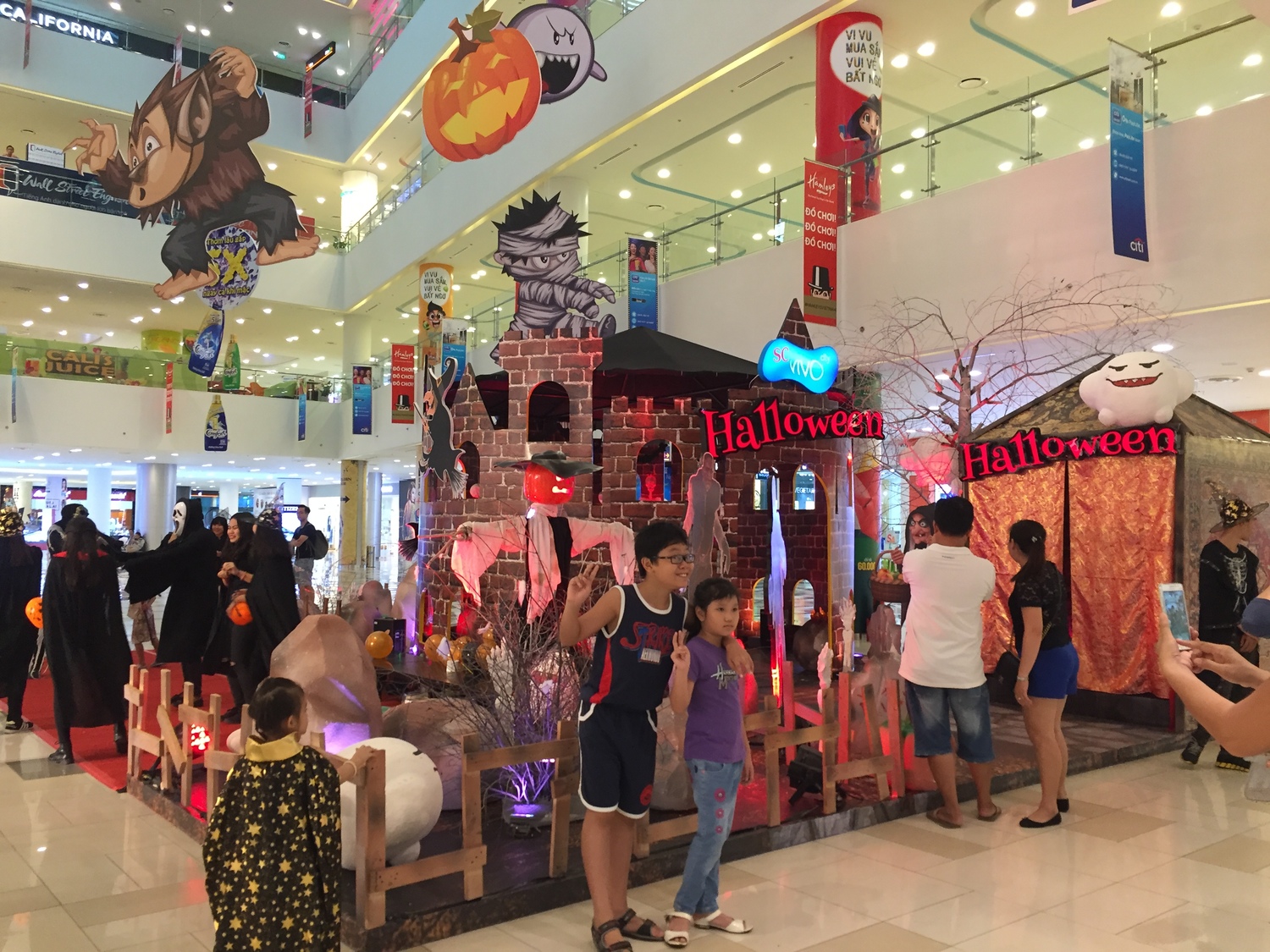 Thêm một gợi ý về Halloween chơi ở đâu Hà Nội thì các khu trung tâm thương mại luôn là địa điểm phổ biến vào những ngày lễ. Vào những ngày lễ đặc thù, trung tâm thương mại thường hay trang trí phù hợp với chủ đề và phong cách của những ngày lễ. Đến đây vào ngày Halloween, bạn có thể tham gia các hoạt động như tham quan, chơi trò chơi, chụp ảnh, ăn uống,... và xem những bộ phim kinh dị.