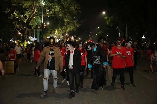 Phố đi bộ Hồ Gươm một địa điểm vui chơi rất náo nhiệt đặc biệt là vào dịp lễ Halloween, nơi đây thường tập trung rất nhiều du khách nước ngoài vì thế mà vào ngày này mọi người thường đổ ra ngoài hòa chung không khí với các tạo hình hóa đầy vẻ ma quái góp phần làm nơi đây càng thêm sôi nổi và náo nhiệt.