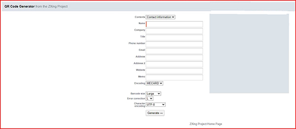 Cái tên đầu tiên được nhắc đến trong danh sách này chính là ZXing Project QR Code Generator. Đây là một trong những phần mềm được nhiều người yêu thích và sử dụng bởi nó rất linh hoạt, nhanh chóng và đơn giản. Bạn chỉ cần truy cập và trang web “http://zxing.appspot.com/generator” rồi chọn một trong những nội dung thuộc các lĩnh vực như: