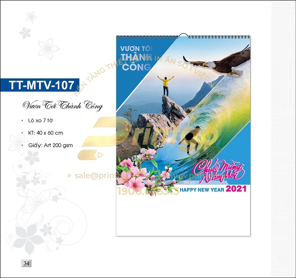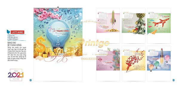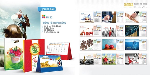 Khởi đầu một năm mới cũng là khởi đầu một hành trình mới. Mọi người ai nấy đều chúc nhau mạnh khỏe, nhiều tài lộc, may mắn trong cuộc sống, gặt hái nhiều thành công trên con đường công danh sự nghiệp. Đó cũng chính là thông điệp mà chúng tôi muốn gửi tới quý khách hàng nhân dịp tết đến xuân về thông qua bộ lịch tết chủ đề Thành công. Hãy cùng tham khảo bài viết dưới đây để lựa chọn cho mình cuốn lịch tết ưng ý nhất nhé.