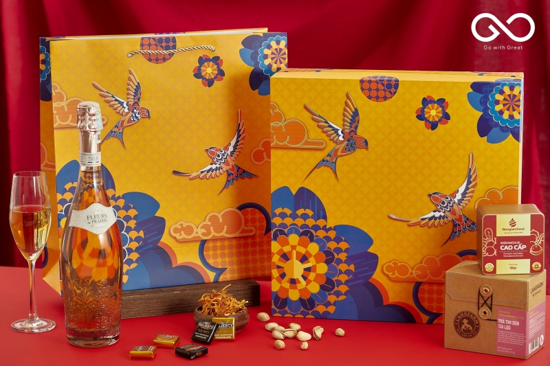 Về họa tiết, xu hướng tối giản được ưa chuộng, với các hình ảnh như hoa mai, hoa đào hoặc linh vật được cách điệu thành nét line-art hoặc pattern nhẹ nhàng. Cuối cùng, sự đồng bộ còn được mở rộng trên toàn bộ set quà như hộp quà, thiệp, bao lì xì hay seal dán, giúp tạo nên trải nghiệm tặng – nhận quà chỉnh chu và nhất quán về thương hiệu.