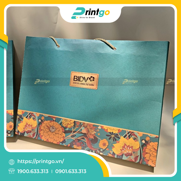 Túi giấy đựng hộp bánh trung thu BIDV PG-TG23-15 là phụ kiện không thể thiếu giúp bộ quà tặng "mùa trăng" của BIDV chi nhánh Từ Sơn (Bắc Ninh) thêm phần sang trọng, thu hút. Với tâm huyết của đội ngũ thiết kế Printgo gửi gắm trong từng chi tiết, túi đựng hộp bánh trung thu này chắc chắn gây ấn tượng tốt đẹp với người nhận.
