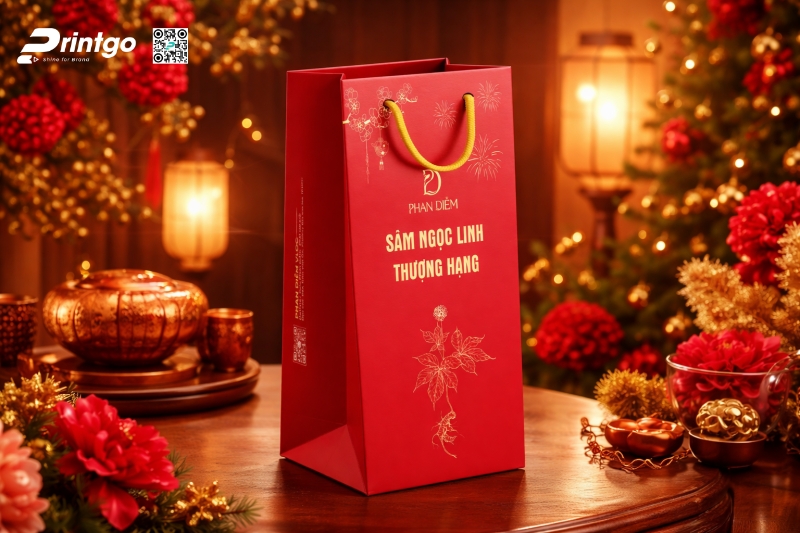 Với những dòng rượu dược liệu cao cấp như rượu sâm Ngọc Linh, bao bì không chỉ là vật dụng đóng gói mà còn góp phần định hình giá trị và đẳng cấp sản phẩm ngay từ ánh nhìn đầu tiên. Xuất phát từ tinh thần đó, túi giấy đựng rượu Sâm Ngọc Linh được Printgo triển khai theo hướng trang nhã, vừa giúp nâng tầm hình ảnh rượu sâm Ngọc Linh khi dùng làm quà biếu trong những dịp đặc biệt.