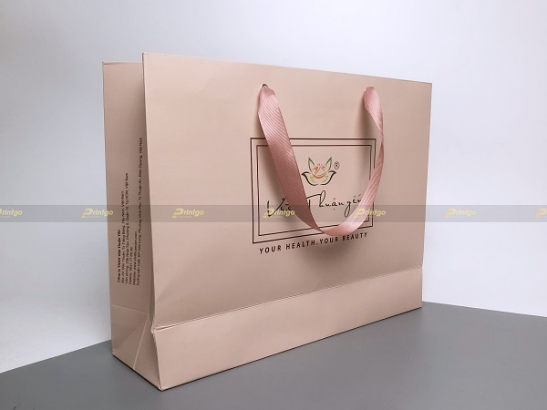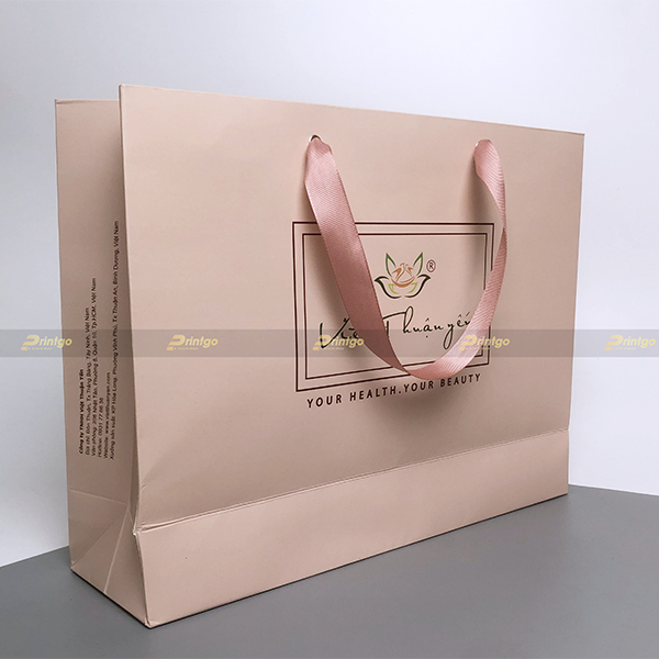 Phần hông của túi giấy được Việt Thuận Yến khéo léo đặt thông tin quan trọng như địa chỉ công ty, hotline, các kênh liên quan, tạo điều kiện thuận lợi cho khách hàng có thể dễ dàng liên hệ khi có nhu cầu muốn mua sản phẩm của doanh nghiệp.