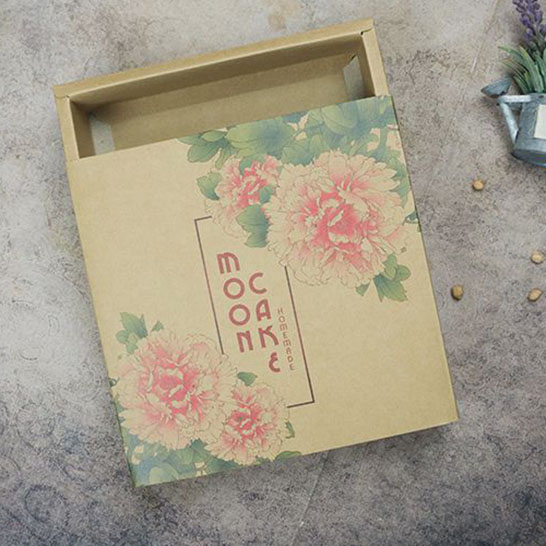 Mẫu túi hộp TLE-PB 010051 có thiết kế sử dụng họa tiết hoa mẫu đơn hồng in chìm ở góc hộp bánh tạo hiệu ứng nổi bật nhưng vẫn thể hiện sự tinh tế, lịch sự. Dòng chữ “Moon cake” được cách điệu và đặt ở vị trí trung tâm của mẫu hộp để thiết kế không bị trống trải cũng như nhấn mạnh chủ đề của hộp quà chuyên đựng bánh Trung thu.