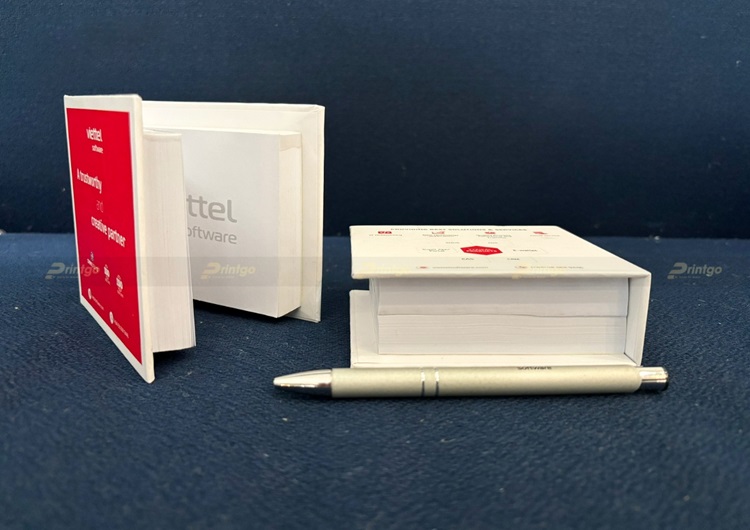 Dấu ấn thương hiệu chưa dừng ở đây, nó còn hiển thị và nhắc nhớ người dùng mỗi khi sử dụng cuốn sổ, bởi bên trong từng trang giấy ghi chú đều được in tên thương hiệu Viettel Software.