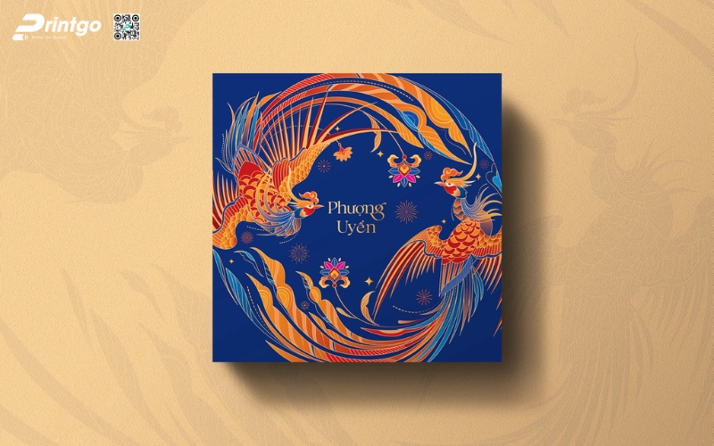 Phượng Uyển Xanh là biểu tượng của sự hòa hợp và phú quý, mang đến một diện mạo trang nhã, hiện đại mà vẫn giữ trọn tinh thần truyền thống Tết Việt. Ngay từ ánh nhìn đầu tiên, tông xanh navy sang trọng kết hợp với hình ảnh đôi phượng hoàng quấn quýt tạo cảm giác bình yên, phú quý và thanh lịch.