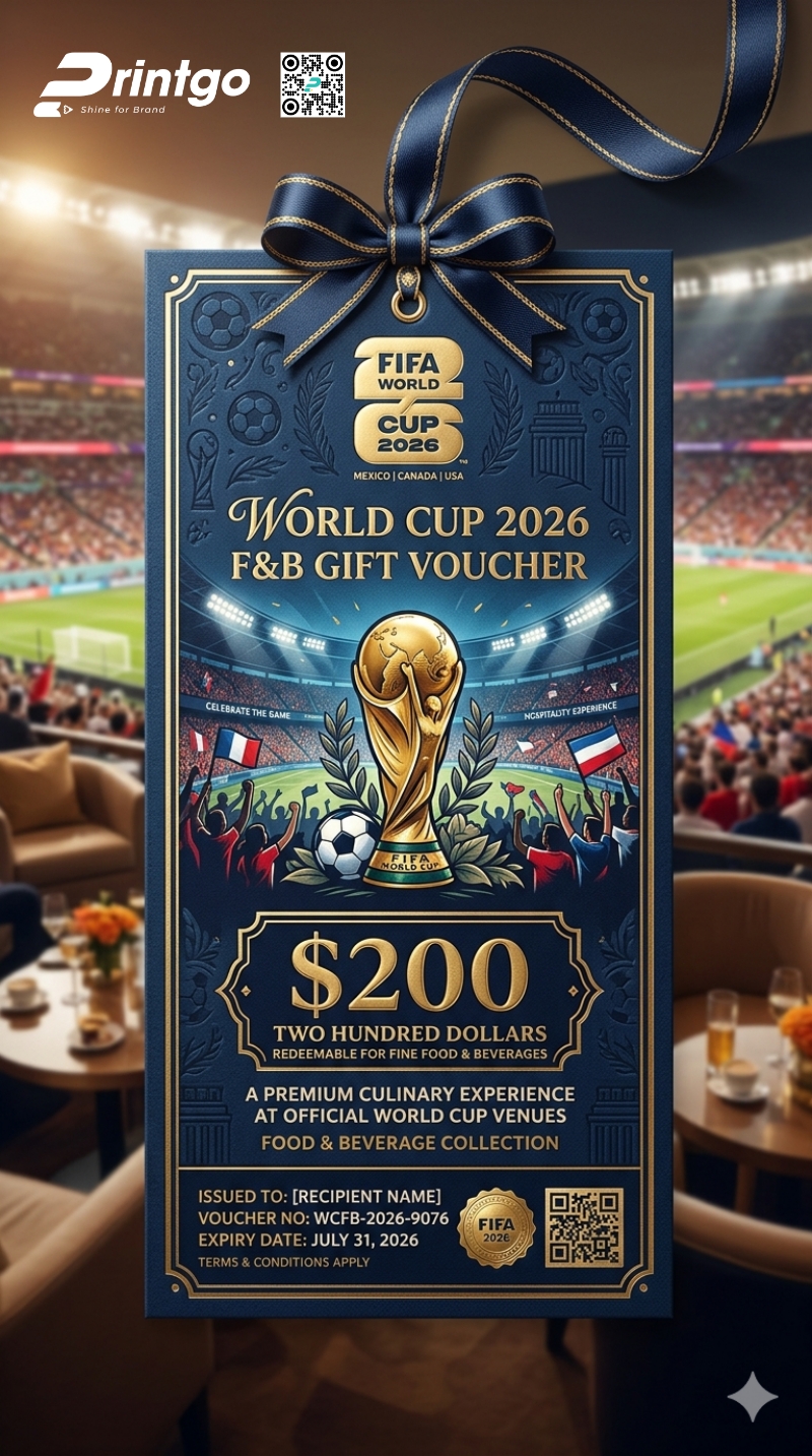 Trong bối cảnh các chiến dịch marketing ngày càng cạnh tranh về trải nghiệm và hình ảnh, thiết kế voucher World Cup không chỉ cần thu hút mà còn phải tối ưu khả năng sử dụng và nhận diện thương hiệu. Đặc biệt, khi nhu cầu in voucher World Cup 2026 gia tăng mạnh, các doanh nghiệp ngày càng chú trọng hơn vào việc kết hợp giữa yếu tố sáng tạo và tính ứng dụng thực tế.