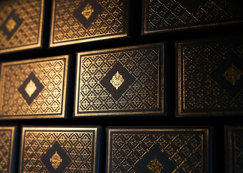 Tên thương hiệu và website được ép kim vàng nổi bật