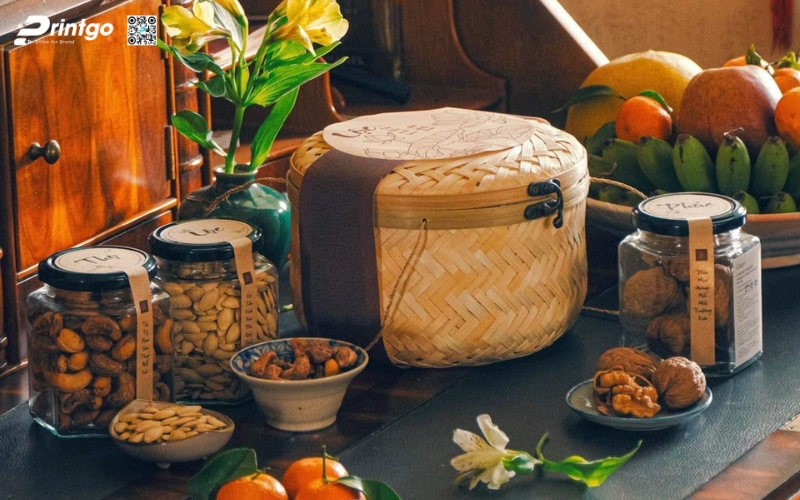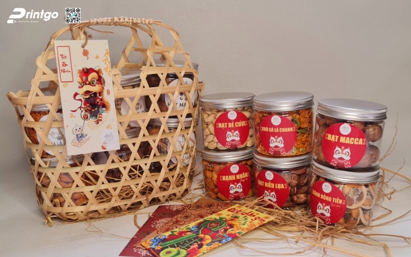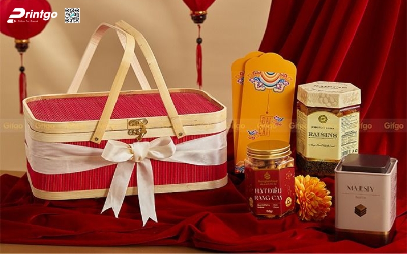 Bên trong, doanh nghiệp có thể kết hợp các sản phẩm truyền thống như mứt Tết, trà, bánh cốm… tạo thành một tổng thể hài hòa, vừa mang ý nghĩa may mắn, vừa gợi nhớ ký ức Tết cổ truyền. Đây là lựa chọn tuyệt vời cho đối tác hoặc nhân viên muốn trải nghiệm Tết Việt trọn vẹn.