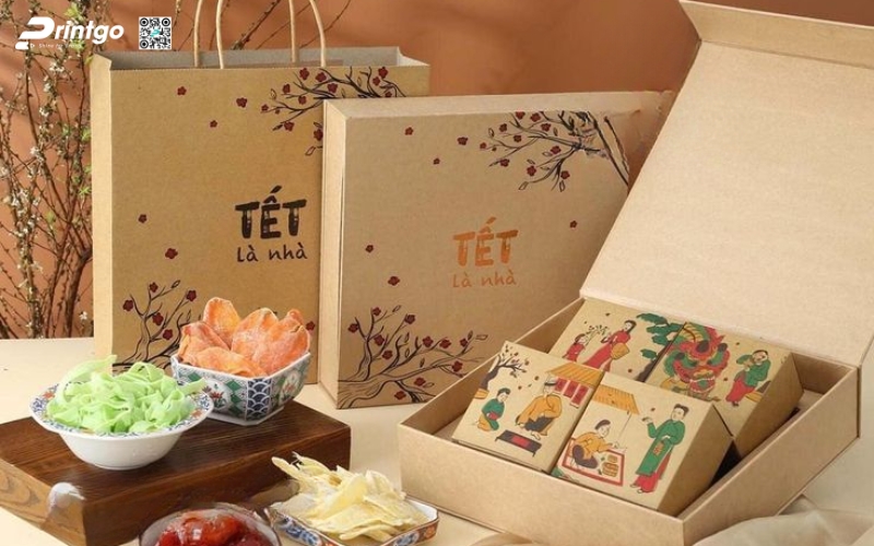Đây là xu hướng dành cho những ai yêu thích vẻ đẹp truyền thống của người Việt, từ họa tiết hoa mai, hoa đào, tranh Đông Hồ, cho đến các câu đối đỏ, họa tiết dân gian. Hộp quà không chỉ là vật trao tặng mà còn là một câu chuyện văn hóa, khiến người nhận cảm nhận được giá trị tinh thần và sự trân trọng.