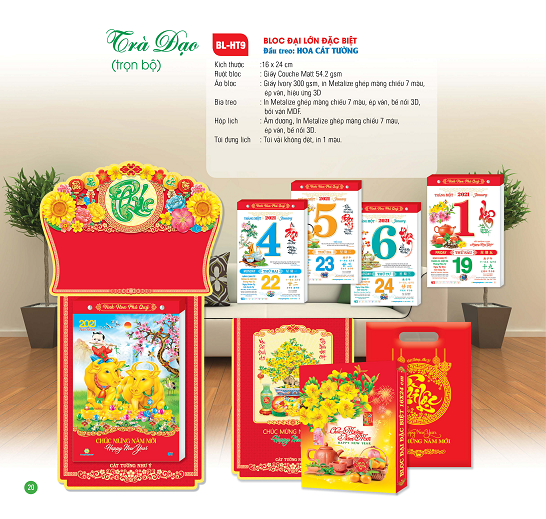 Dịp lễ Tết là khoảng thời gian lý tưởng để các doanh nghiệp và công ty bày tỏ lòng cảm ơn, sự tri ân tới đối tác cũng như khách hàng của mình qua những món quà Tết ý nghĩa. Trong đó lịch Tết là một sự lựa chọn cực kỳ phù hợp đối với mọi doanh nghiệp từ nhỏ cho đến các tập đoàn lớn bởi các ưu điểm: chi phí rẻ, quảng bá thương hiệu rộng rãi, giá trị thẩm mỹ cao...