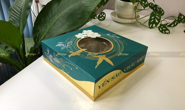 Mẫu hộp đựng yến sào của thương hiệu Yến Sào Châu Kiệt, in metalize, gia công ép kim, phủ UV