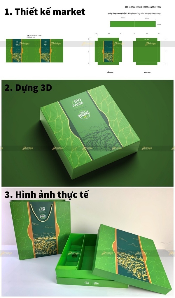 Mẫu hộp quà tết âm dương, khay định hình dựng vách carton lạnh phủ metalize đến từ thương hiệu BIOFARM
